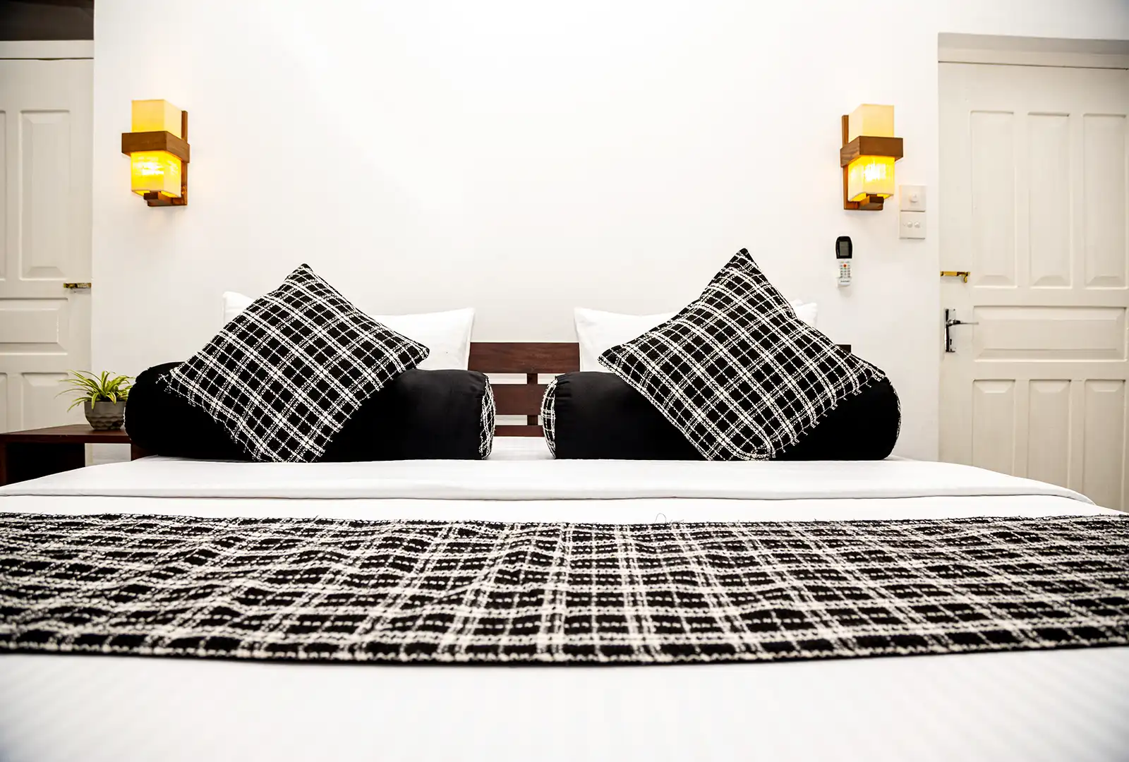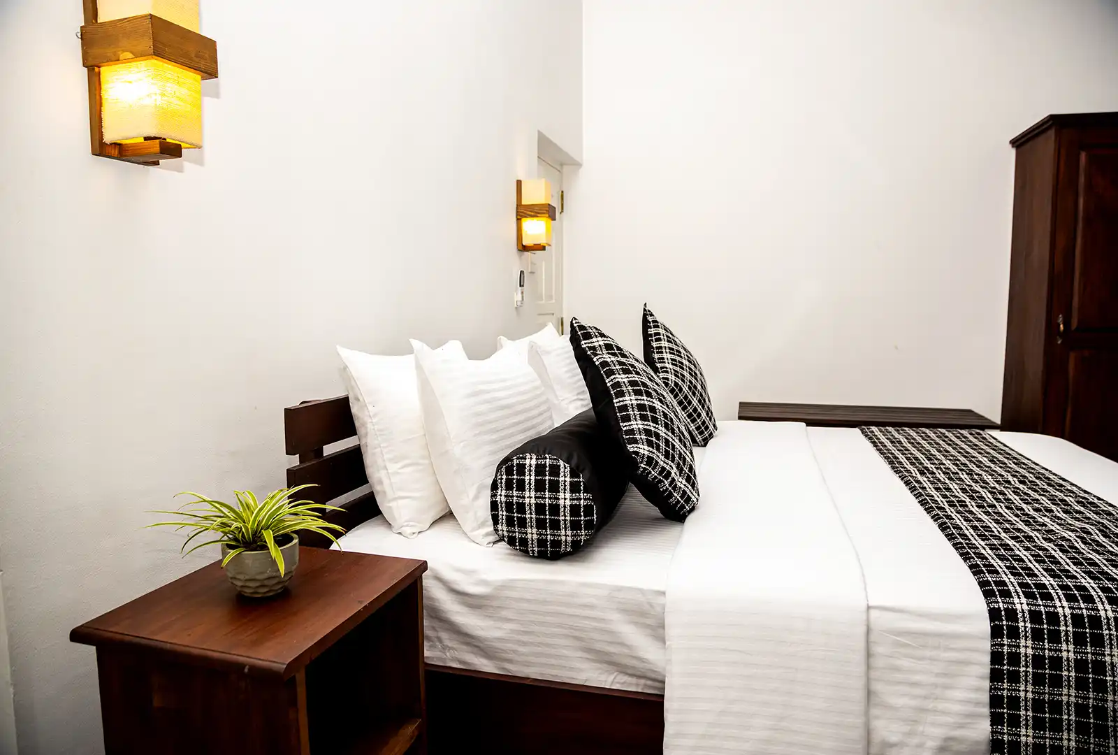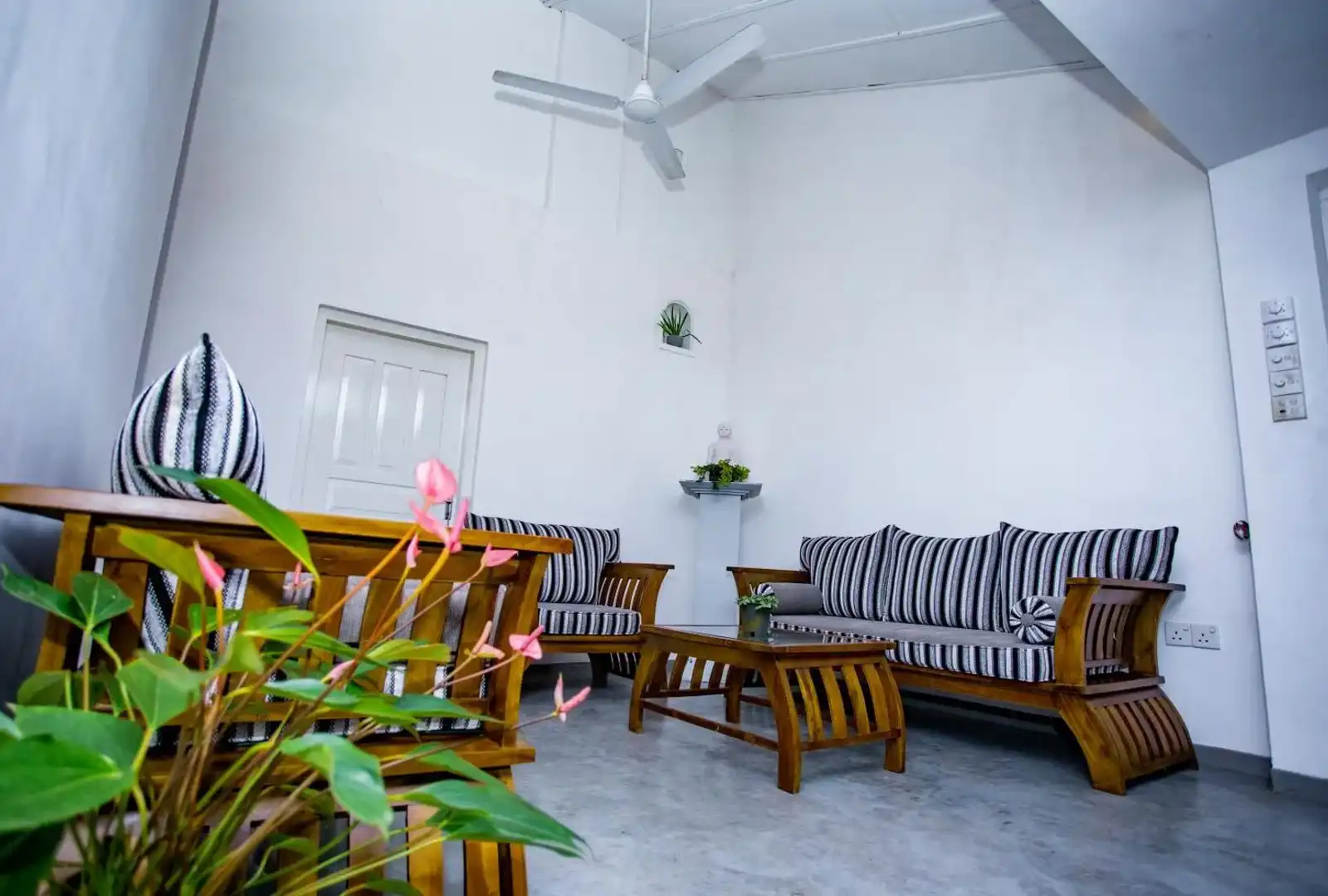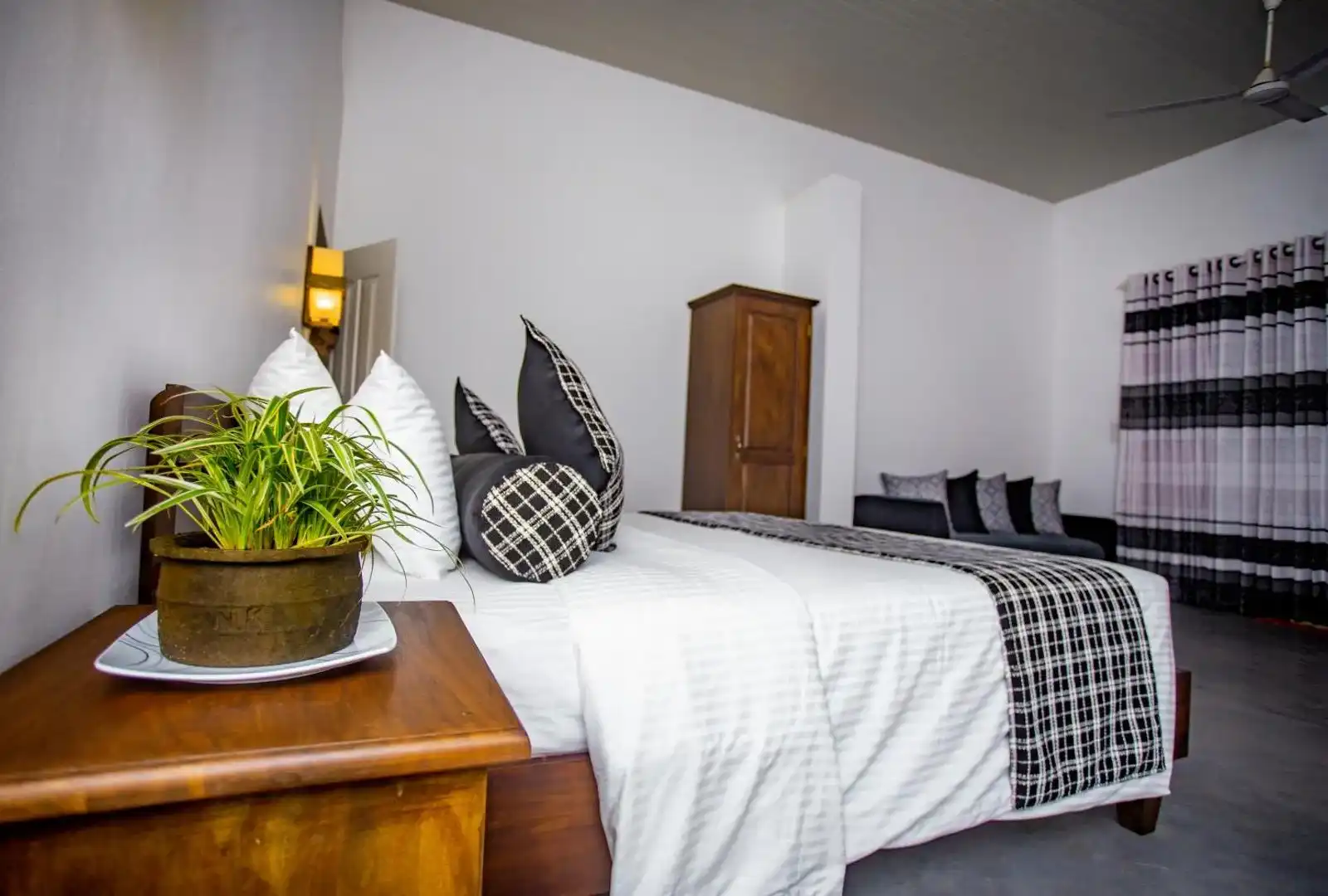 Enjoy a spacious double room with two comfortable single beds, designed for friends or family, and wake up to stunning views of the beach and the gentle sound of waves.