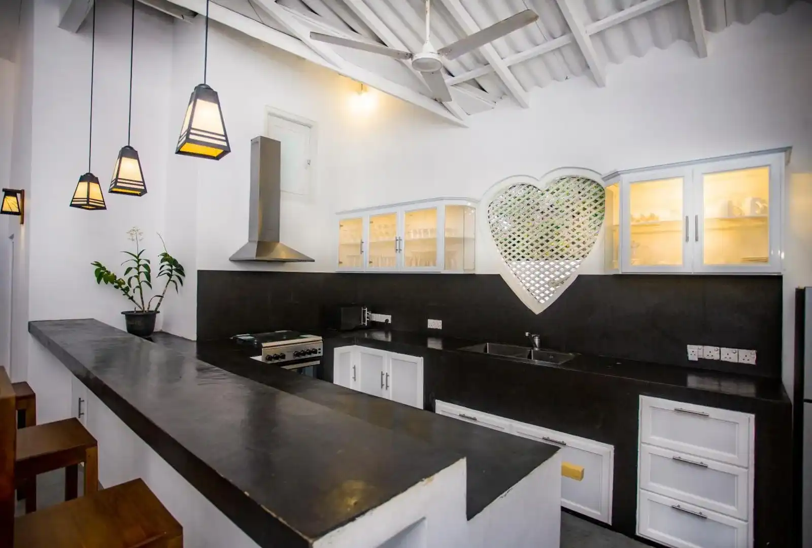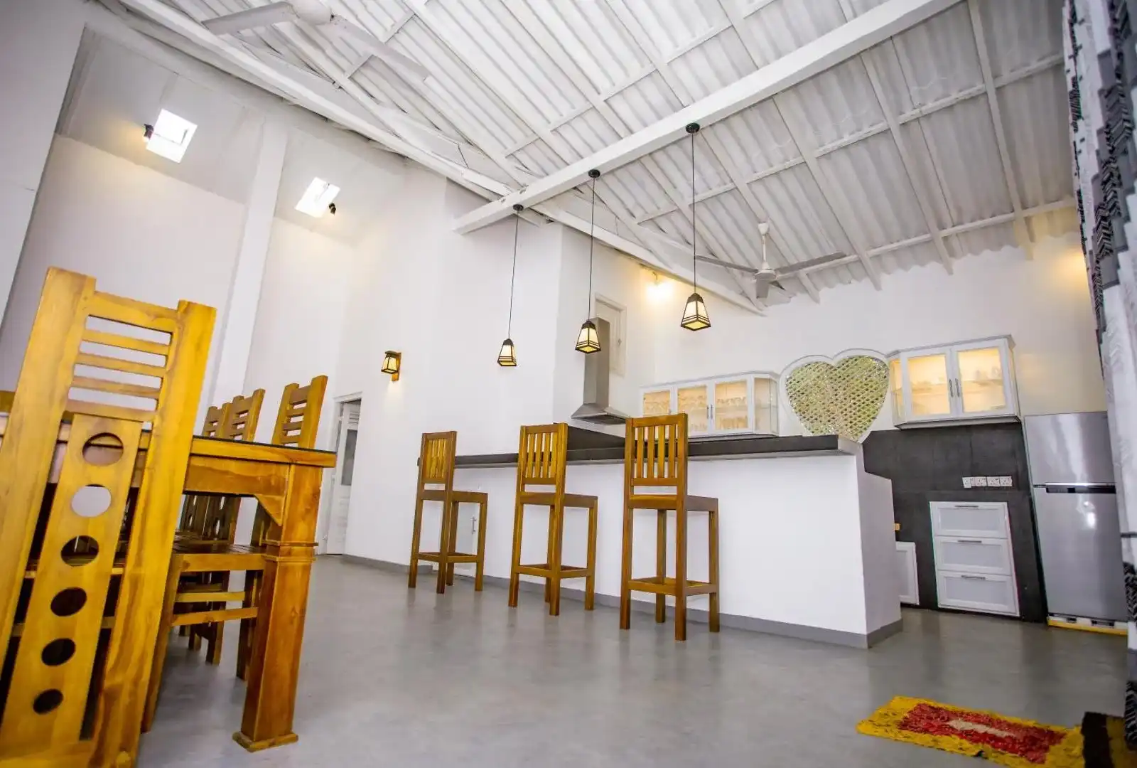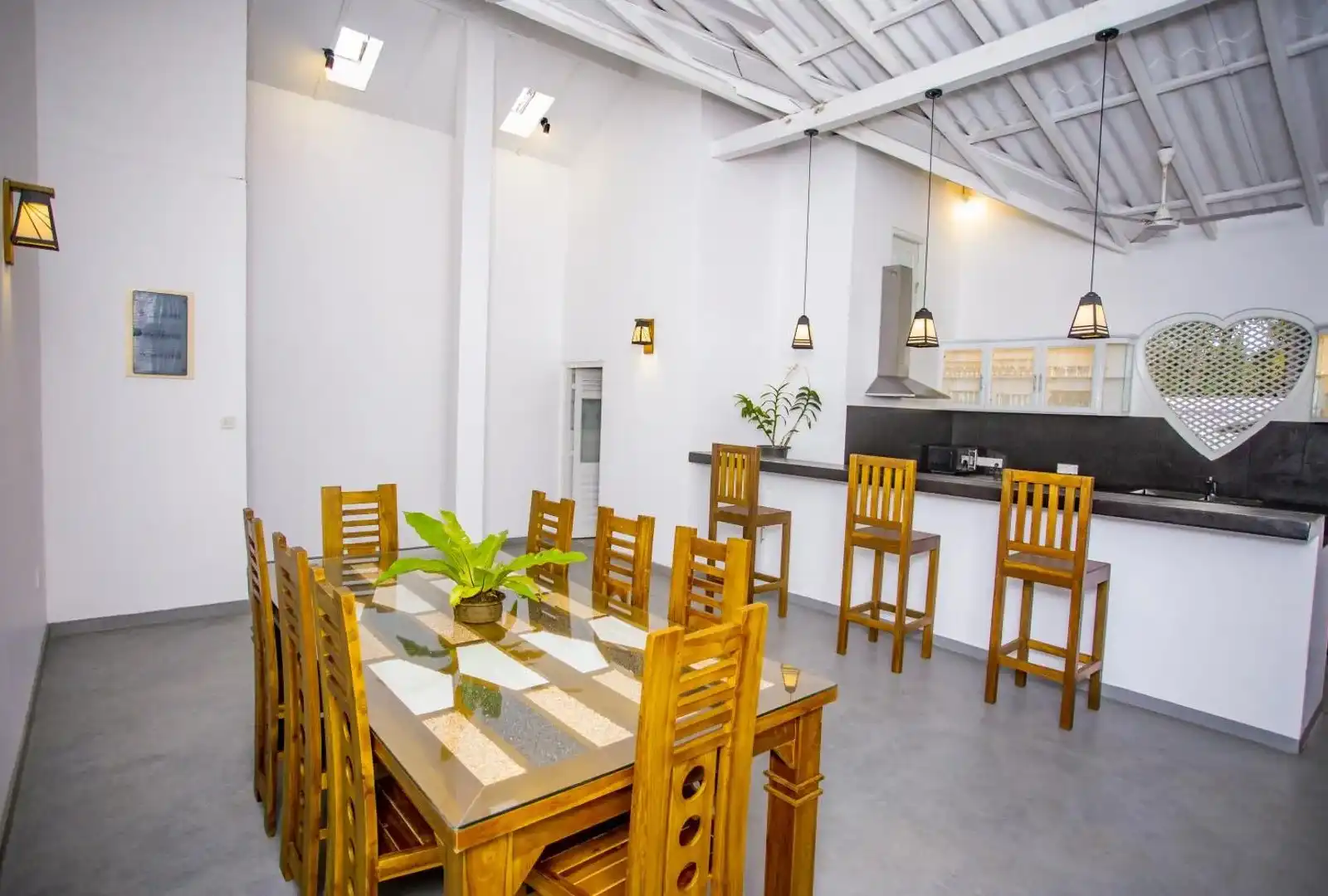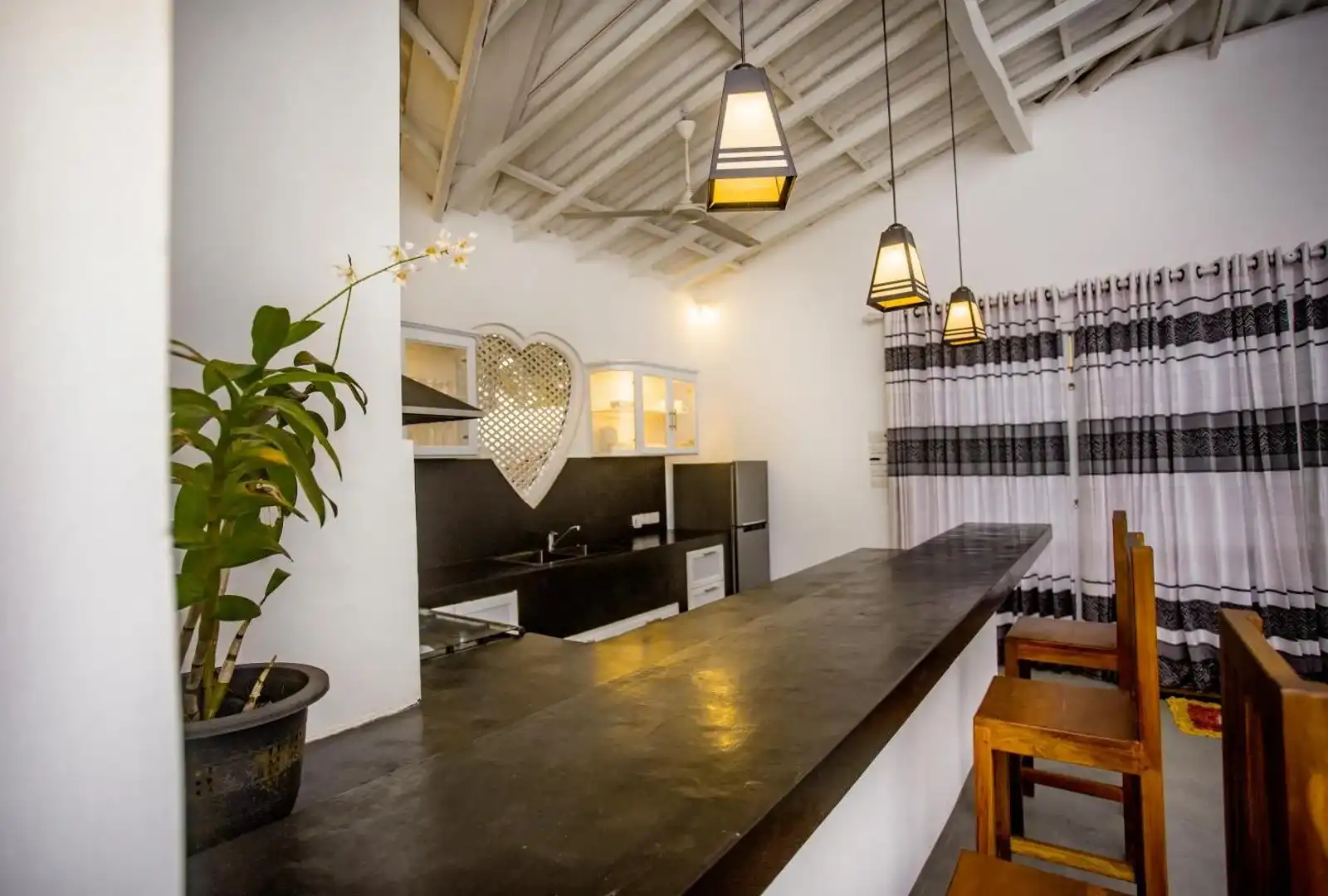 Enjoy a fully equipped kitchen and stylish dining area, perfect for preparing meals or sharing delicious dishes while taking in views of the beach.